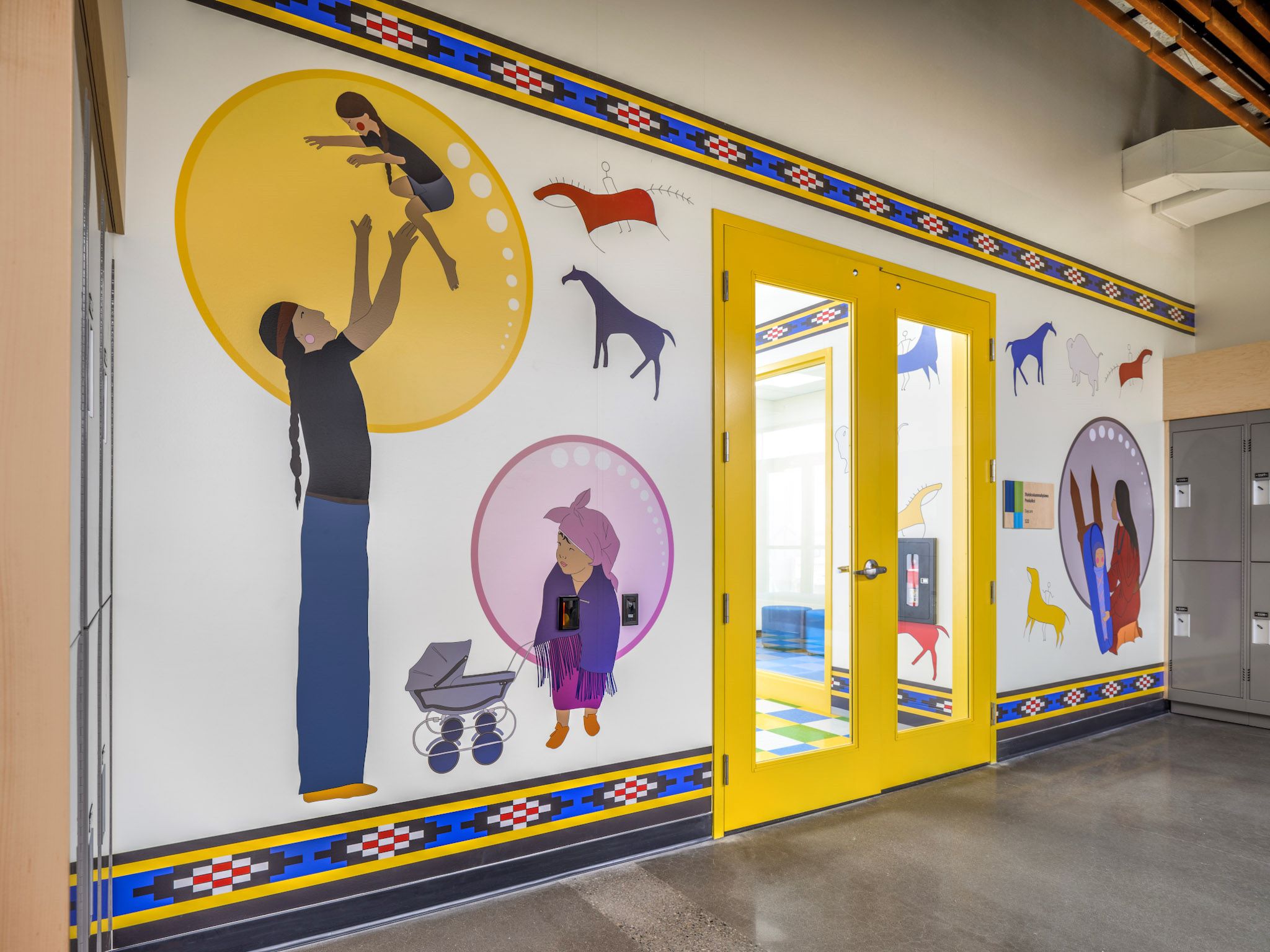Our welcoming space features vibrant Blackfoot cultural artwork and murals that reflect family, identity, Blackfoot Language, and culture/traditions creating a strong sense for belonging for children and parents.